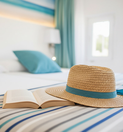 En el Hotel Playas de Paguera te esperan habitaciones funcionales y sumamente cómodas. La mayoría disponen de balcón y en todas ellas encontrarás una estética mediterránea, que refleja la esencia de Paguera y sus playas.